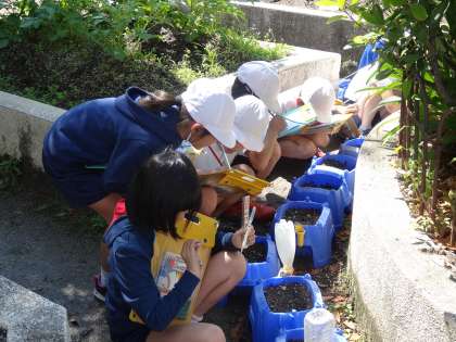 5月21日(木)の1時間目にホウセンカの子葉の観察を行いました。1週間前に種まきを行い,子どもたちが毎朝水やりを欠かさず行ったということもあり,子どもたち一人一人の鉢にまいた種から芽が出ていました。まだ1cmほどの大きさではありますが,芽が出たということもあり,子どもたちからは「先生!芽が出たよ!」「こんなところから芽が出るのか」など喜びや驚きの声をたくさん聞くことができました。来週は,ヒマワリを観察します。どれくらい成長しているのか楽しみですね。