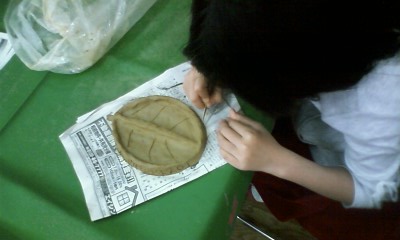 指の腹でていねいに伸ばしています。模様をつけている子どももいます。山の家で焼いてもらい,学校へ届くのは夏になるそうです。どんなふうに出来上がるのか楽しみですね。