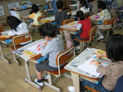 担任の先生が「不思議なたまごを見つけました。中から何が出てくると思いますか。」と聞くと「ヒヨコ」「カメ」「自転車」「ロケット」・・・と次々と意見が出ました。