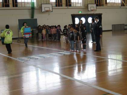 1年生は,道路の歩き方です。路側帯の内側や歩道の内側を歩くこと,横断歩道は左右をよく確認して渡ることなどを学習しました。