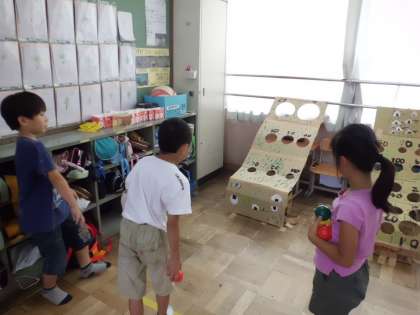 3年生はどんなゲームにするかを熱心に話し合ったそうです。自分たちで考え実行したお店だったので,お客さんが喜んでくれたのを見てとても満足していました。