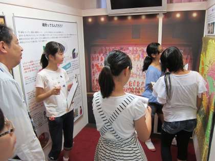 表情を採点する機械や,まるで皮のような質感の織物など,最先端技術が使われているモノもたくさんあり,子ども達は驚いていました。現在は世界的に有名な企業でも,始まりは小さな工場であったり,何万回も失敗を繰り返しながら1つの製品を作り出していたりすることを知り,企業の努力やモノづくりに携わる人たちの熱い想いについても感じ取ることができました。