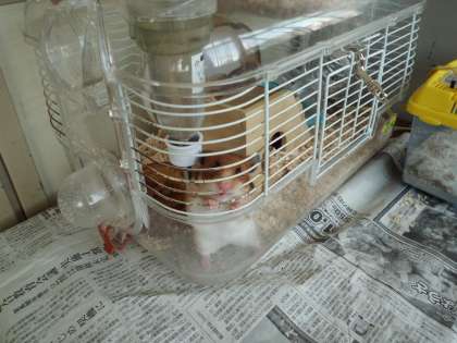 教室前の廊下ではハムスターの「なみちゃん」が元気に遊んでいました。