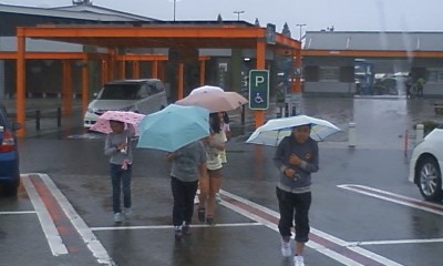 9時20分,土山サービスエリアでトイレ休憩をしました。 天候は雨ですが,子どもたちは元気いっぱいです。