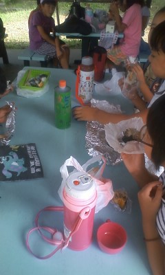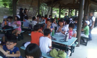 あずま屋で昼食
