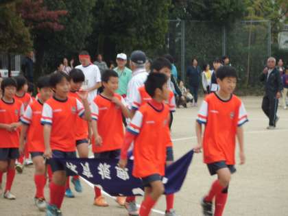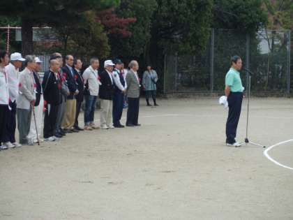 室町区民体育祭が行われています。開会式ではあいさつの後,少年野球部,サッカー少年団の子どもたちを先頭にして,各町内の皆さんが入場されました。