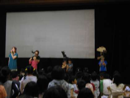 劇と劇の間には,選ばれた子どもたちが実際に人形を動かして,映し出して見せる影絵教室がありました。