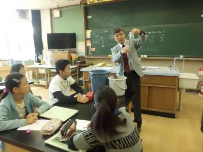 6年生の理科「土地の変化とつくり」の単元では,室町小学校前校長の吉見先生が授業をしてくださいました。校長先生の時から恒例になっている授業で,今年の6年生も楽しみにしていました。