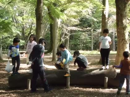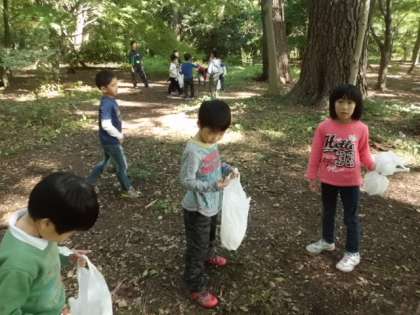 1年生は生活科「あきといっしょに」で,秋を見つけに御苑に行きました。御苑に着くなり子どもたちはたくさんの落ち葉を見つけて,とても嬉しそうでした。鮮やかな色の葉っぱを友達と見せ合いながら,どんどん拾っていきました。どんぐりもいろいろな種類がありました。小さいものや大きいもの,細長い形や丸い形・・・と様々でした。松ぼっくりなどの木の実も拾って,たくさんの秋を見つけました。