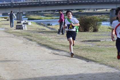 6年生は全員,河川敷へ来て応援しました。地域の皆さんや保護者の皆さんもたくさん応援に来てくださいました。第4,第5,第6走者へとつなぎました。