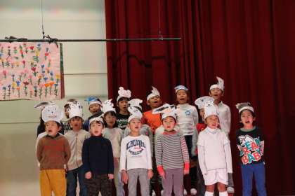 入学して9ヶ月を迎えた1年生は,頼もしく成長しました。学習に熱心に取り組み,できることがたくさん増えました。学習発表会では,「思い出のアルバム」の歌に合わせ,学習したことを季節ごとにまとめて発表しました。