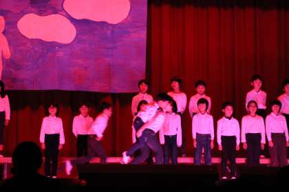 劇の場面では登場人物の気持ちを想像しながら演じました。幕が下りた後「ちいちゃんのかげおくりって,こんなお話やったんや。」と味わった思いを改めて口にする上級生の子どももいました。3年生の子どもたちが一つにまとまり,見る人みんなの心に訴えた発表でした。