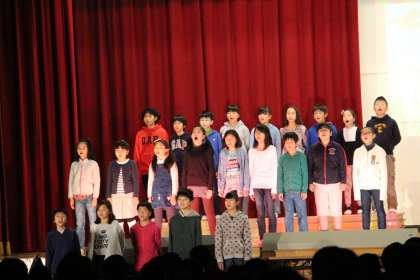 一人一人で,グループで,みんなで・・・いろいろな読み方を工夫しました。特に残雪が大造じいさんのガンをハヤブサから守る場面は迫力がありました。一人一人が自分のできる最高の声と表現で,観客の心に伝えてくれました。