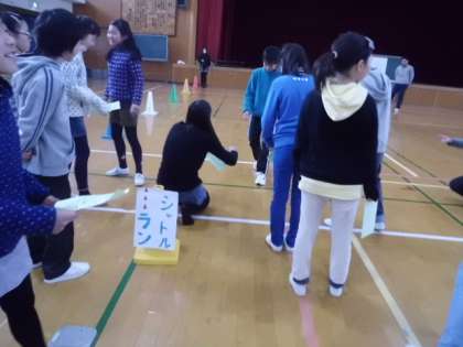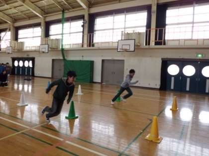 シャトルランでは,コーンの間を往復しながらゴールまで進み,何秒で走り抜けられるかを測定します。順番待ちの子どもたちは,タイムを見守りながら「ゴールまであと少しだよ!」「新記録が出た!」と大盛り上がりでした。