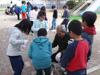 3年生は,社会科「昔の道具体験」で,七輪を使ってお餅を焼きました。今回も室町老人クラブと女性会のみなさんが見守ってくださいました。