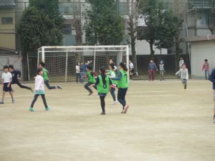 3月7日は今年度最後の「なかよし遊び」でした。お天気に恵まれ,最後も運動場で元気に遊びました。室町小の子どもたちは鬼ごっこが特に大好きだなと思います。低学年の子どもも高学年のお兄さんお姉さんを一生懸命追いかけていました。ビブスを着けているグループは「ふえおに」をしているそうです。中には「転がしドッジ」で遊ぶグループも・・・。1年たつとずいぶん仲良くなったようです。最後の時間を楽しんでいました。
