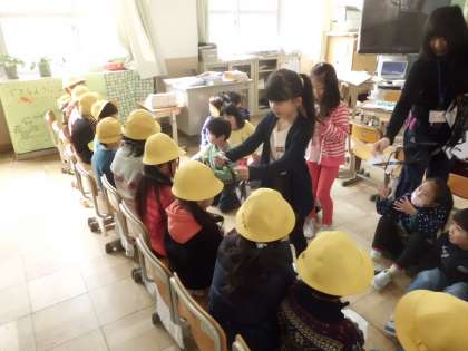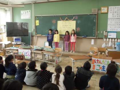 京極幼稚園の園児さんが室町小学校へやってきました。生活科の授業で「1年生わくわく会」を計画した1年生が年長さんを招待したのです。もうすぐ1年生になる年長さんに「1年生ではこんなことをするよ。」ということを伝える楽しい会にしようと,子どもたちは張り切って準備していました。