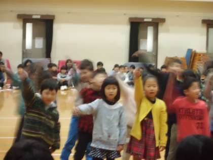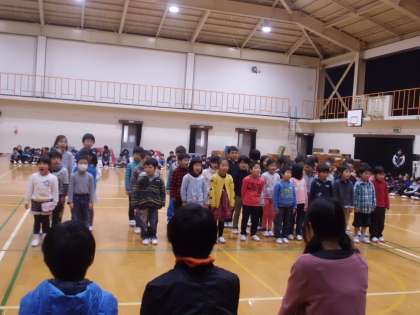 1年生が歌と言葉でいろいろ教えてくれた6年生にお礼の気持ちを伝えました。