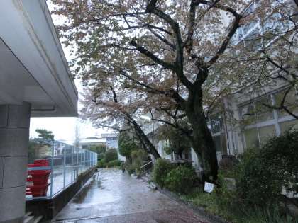 あいにく,今日は朝から強い雨となり,満開の桜もたくさん花びらを落としました。運動場も大きな水たまりがたくさんあります。明日は,しっかり晴れてほしいです。