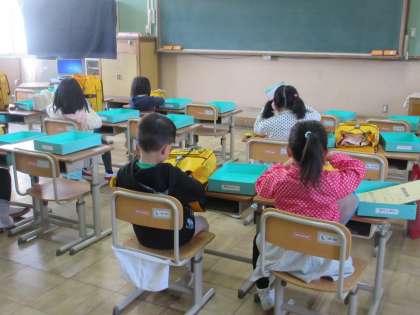 早く準備ができた子どもたちは静かに絵本を読んでいました。今日も,1日しっかりと学習できそうです。今日も昨日と同じく,11時35分ごろに集団下校をします。よろしくお願いします。