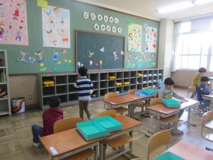 今日も元気に1年生は登校してきました。昨日,学習したかばんのしまい方はできるかなと思ってみていましたが,昨日ことをきちんと覚えていて,かばんの中のものを出して机の中に入れ,空っぽになったかばんを自分のロッカーにしまっていました。