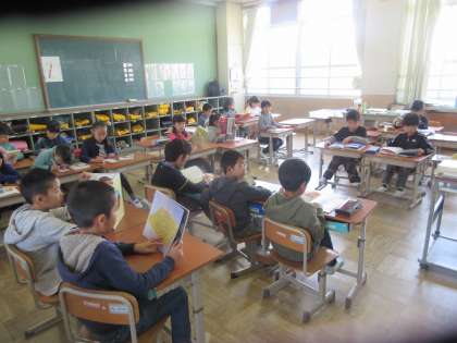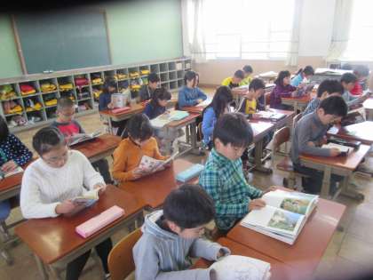 室町校では,月・水・金曜日の朝に10分間読書に取り組んでいますが,今日も静かに読書に取り組む姿が見られました。本は,心の栄養になります。良い本をたくさん読んでほしいと願っています。