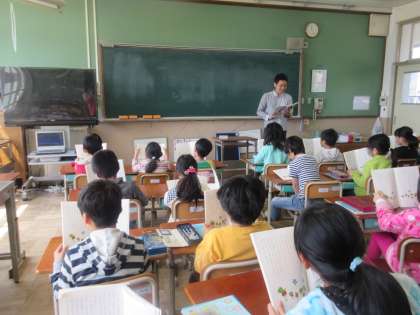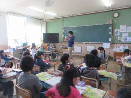 3年生は,とても落ち着いた様子で学習をしていました。1組は,国語の学習でした。「きつつきの商売」という物語文を,先生が読み,子どもたちは、教科書を見ながら聞いていました。みんな教科書をきちんと持ってよい姿勢で聞いているのがすてきでした。