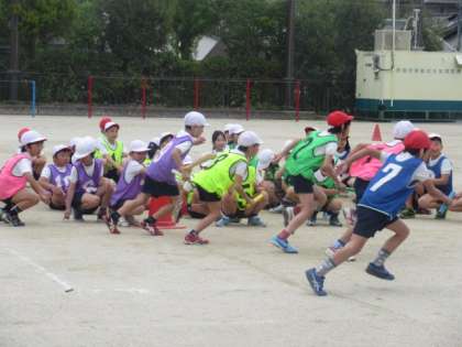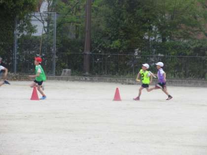 運動場からは楽しそうな歓声が聞こえてきました。3年生が体育の学習でリレーをしていました。先生に,「バトンをもらう時にリードをするといいね。」と言われ,リードすることを意識してリレーに取り組んでいました。「リードリード!」と友達に声をかける子どもたちもいました。みんな力いっぱい走り,満足そうでした。