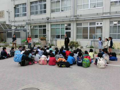 今日から6年生は修学旅行です。全員,時間までに集合することができました。子ども達の司会で出発式が始まりました。みんな静かに校長先生や担任の先生のお話を聞いてきました。司会の子ども達もとてもしっかりと進行し,さすが最上級生だと感じました。子ども達の表情には静かな中にも,修学旅行への期待と喜びが浮かんでいました。担任もとても気合が入っています。