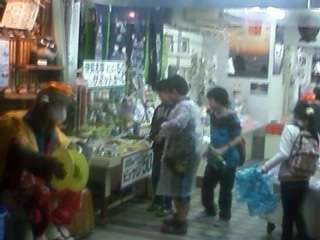 浜千代館でのおいしい食事を終えた後,旅館近くのお店で傘をさしてお買い物をしました。みんな雨にも負けず楽しそうに買い物をしました。