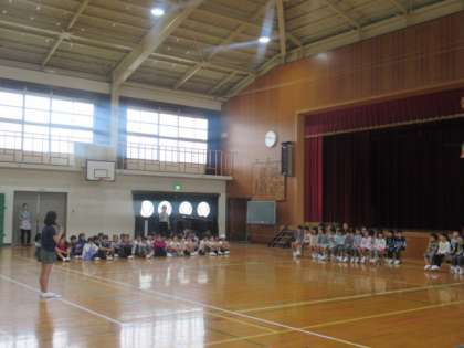これからどんな会になるのでしょう。代表委員の5・6年生が司会を務め,会が始まりました。始めの言葉もさすが6年生。全校の子ども達の前で堂々と話すことができました。