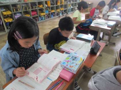 子ども達は,漢字の成り立ちに興味をもち,熱心に調べていました。楽しみながら漢字を覚えられるといいですね。