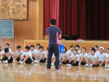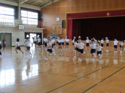 今日より陸上部の練習が始まりました。多くの子ども達がやる気に満ちた表情で参加していました。はじめに,担当者より練習の進め方などの話を聞きました。そして,練習開始です。腕をしっかりと振る練習や,スタートダッシュの練習をしました。そのあとは,鬼ごっこをしました。楽しみながら体を動かすことができました。