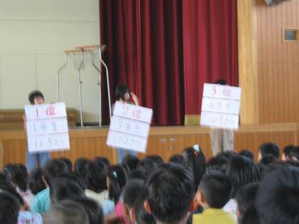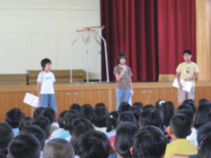 図書委員会の取組で図書室に来る子どもが少し増えたようです。中間休みや昼休みには図書室で毎日貸し出しを行っています。夏休み中にも開館するので,たくさん借りに来てください。