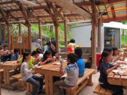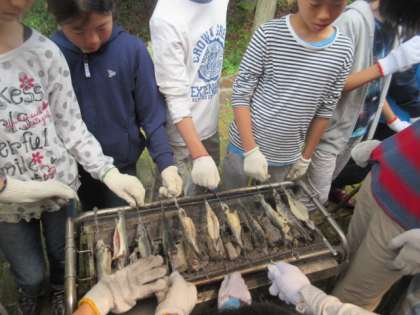 花背山の家野外活動3日目(魚さばき 食事)2