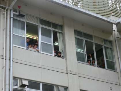 4泊5日の活動を終えて,5年生の子ども達が花背山の家から帰ってきました。6年生の子ども達も,教室から出迎えてくれました。
