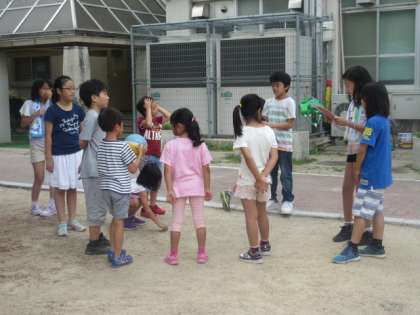 運動場では,「中あて」や「だるまさんがころんだ」などをしていました。教室では,「ハンカチ落とし」が多かったです。少しグループにも慣れ,打ち解けた様子が見られました。