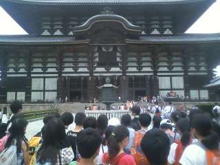 昼食を食べ,かわいい鹿たちと触れ合った後,東大寺へ。間近で見る大仏の大きさに驚いていました。柱にある大仏の鼻の穴と同じ大きさの穴をくぐる体験もしました。