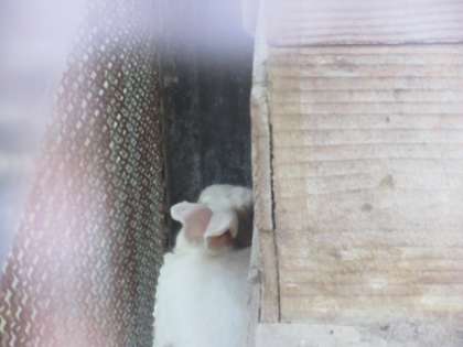 まだ新しい環境に慣れず,緊張しているようです。ウサギ小屋に近づくと,さっと隅に隠れてしまいました。少しずつ新しい環境に慣れ,かわいい姿を見せてくれるまで,この写真でお許しください。