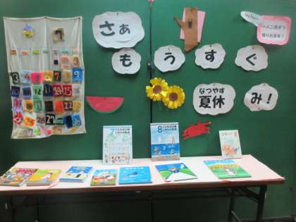 夏休みに向けてのおすすめの本を展示しました。ぜひ,夏休みに読む本を借りに来てください。