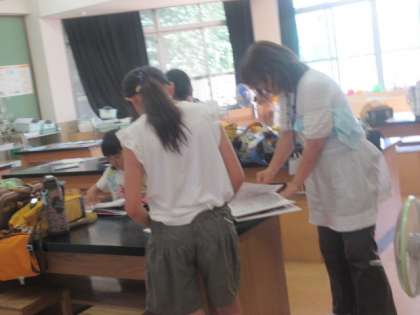 自由研究のテーマを決めるのはなかなか大変なことです。ずっと悩んでいる子どもには,指導者が「難しく考えないで,学校で習ったことをもとにしてアレンジしたらいいよ。」と声をかけていました。みんな,やってみたいテーマが決まり,うれしそうに帰っていきました。今年も力作を楽しみにしています。