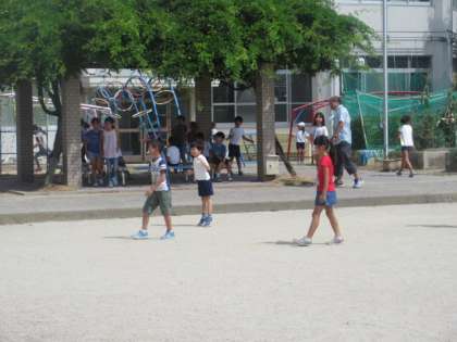暑い日でしたので,運動場で遊んでいたグループは汗びっしょりになっていました。