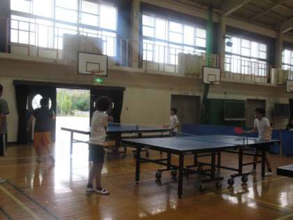 今日はクラブ活動の日です。体育館では卓球クラブが楽しそうに活動をしていました。