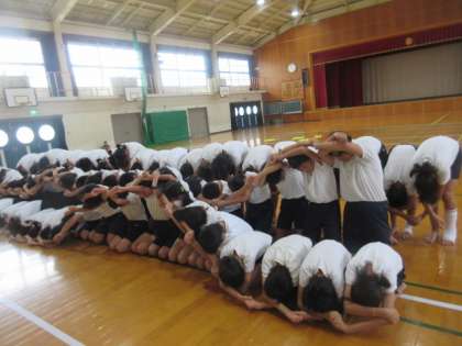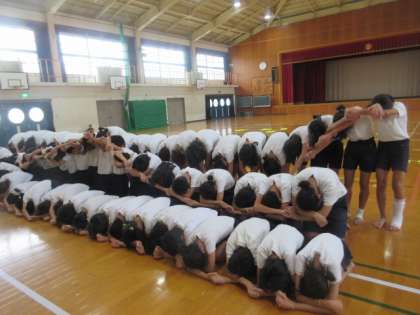 今日の組体操の練習は,ウェーブでした。全員で固まって並び,心を一つにして行わないときれいな波にはなりません。先生たちの声かけを聞きながら,真剣に取り組んでいました。