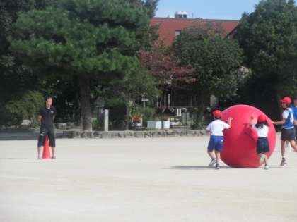 最後に,1・3・6年生での競技「大玉コロコロ」,2・4・5年生での競技「つなひきダッシュでGO!GO!」の練習を行いました。