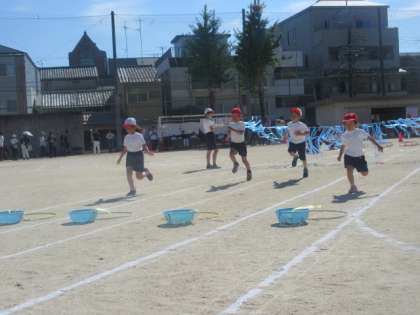 1年生にとっては初めての運動会でしたが,リレーやバラエティ走,50M走も,力いっぱい頑張ることができました。他学年の競技の時には,楽しそうに応援している姿が印象的でした。