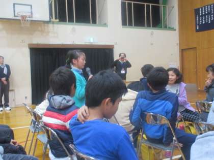 授業の後は,体育館で中学校生活の様子や部活動の様子を写した映像を見せてもらいました。烏丸中学校の生徒たちが生き生きと生活している様子が伝わってきました。4月から入りたい部活が見つかった子どももいました。