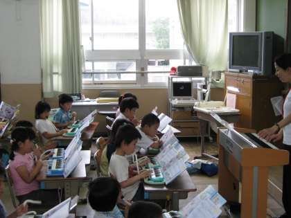 2年生は,鍵盤ハーモニカで指使いの練習をしました。