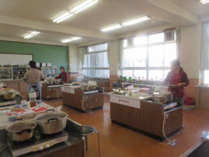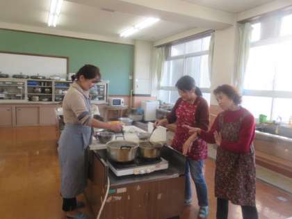 明日のもちつき大会に向けて,少年補導の方々が早くから準備をして下さっています。家庭科室では,大きな鍋で小豆をたいてくださっていました。何時間もかけてあくとりをしてくださっていました。明日はおいしいおぜんざいが食べられそうです。