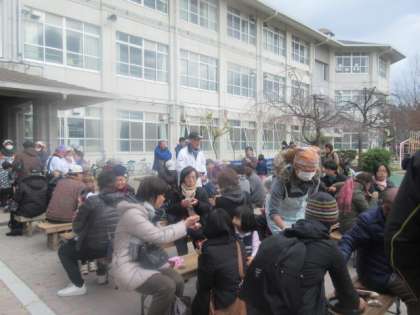 PTAの方々は子どもたちの受付やおみやげ配りをして下さっていました。朝早くから多くの方々の準備,支えがあって今年もおいしく楽しいひと時が過ごせました。企画してくださった少年補導の皆様,ありがとうございました。